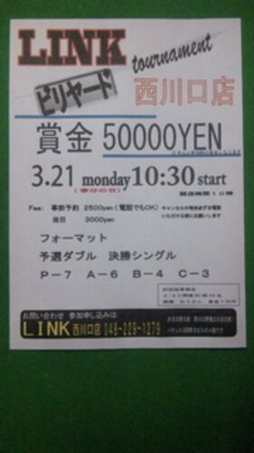 LINK西川口店の次回のHTをご紹介させていただきます! 今回はPABC戦ですね! 日時:3/21(月)春分の日 10:30スタート(オープン10時) P-7 A-6 B-4 C-3 予選ダブルイリミ 決勝シングルイリミ 事前予約 2500円(電話での連絡でOK) 当日 30…
